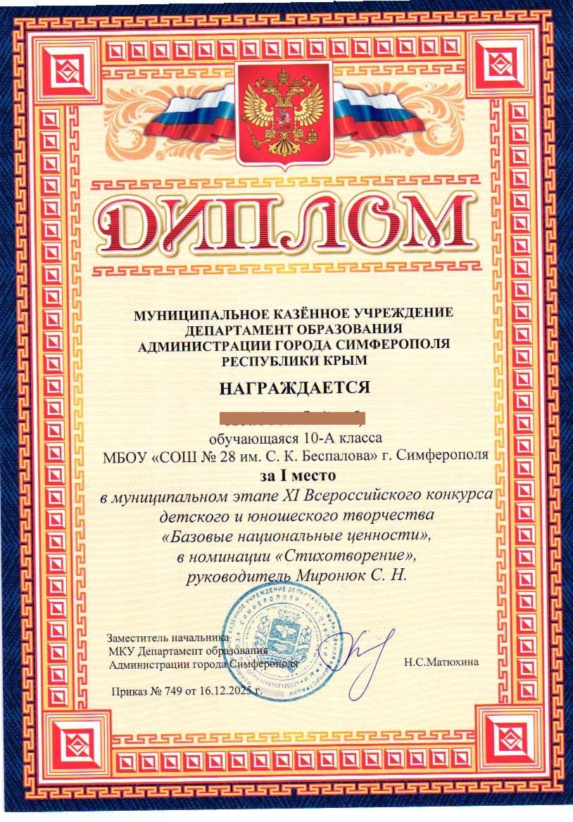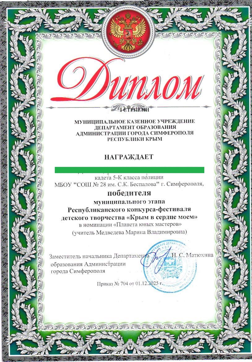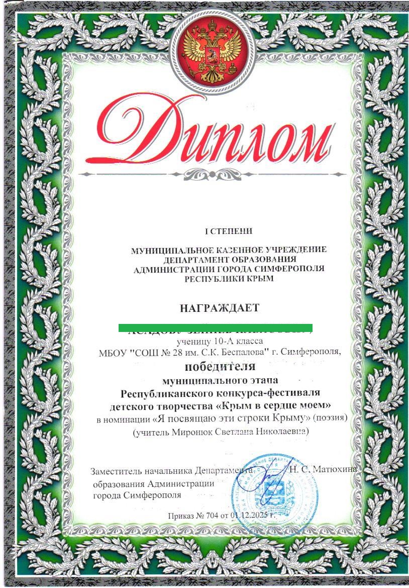 МБОУ «СОШ №28 им. С.К. Беспалова» г. Симферополь
