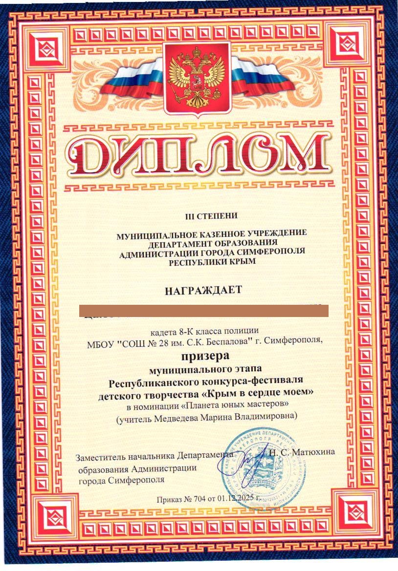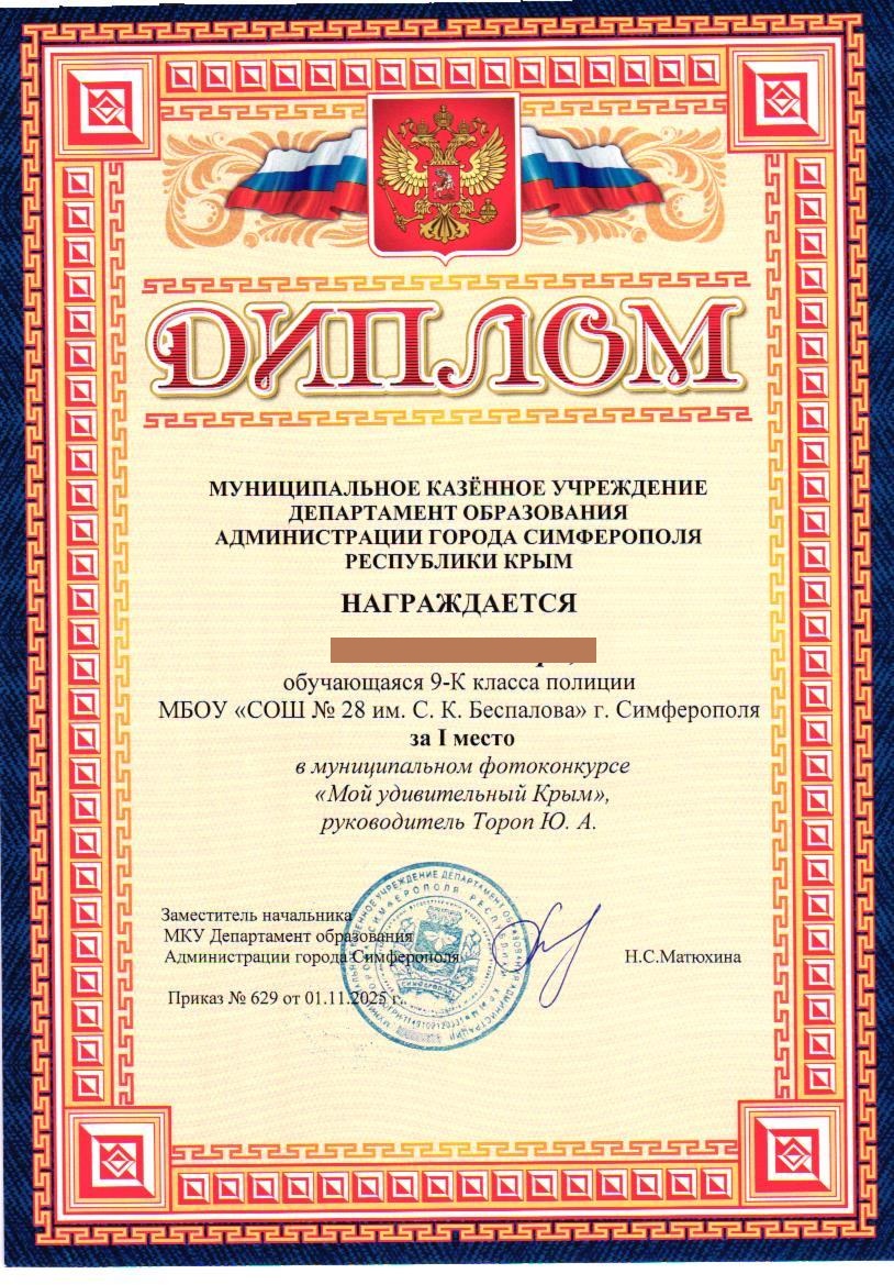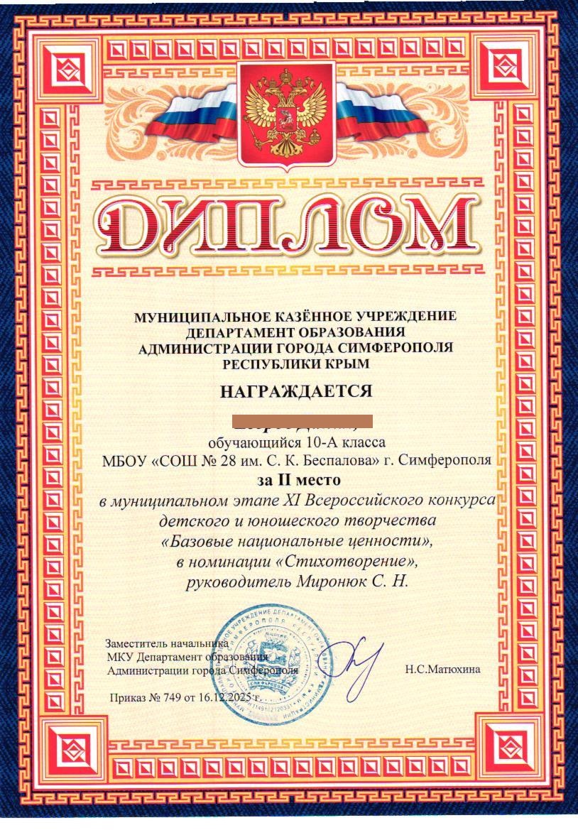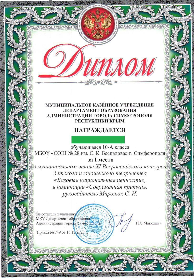 МБОУ «СОШ №28 им. С.К. Беспалова» г. Симферополь