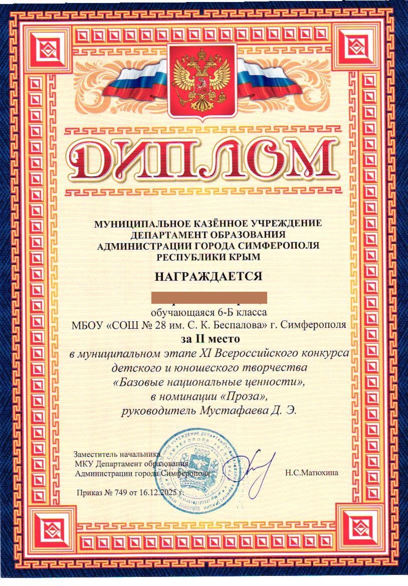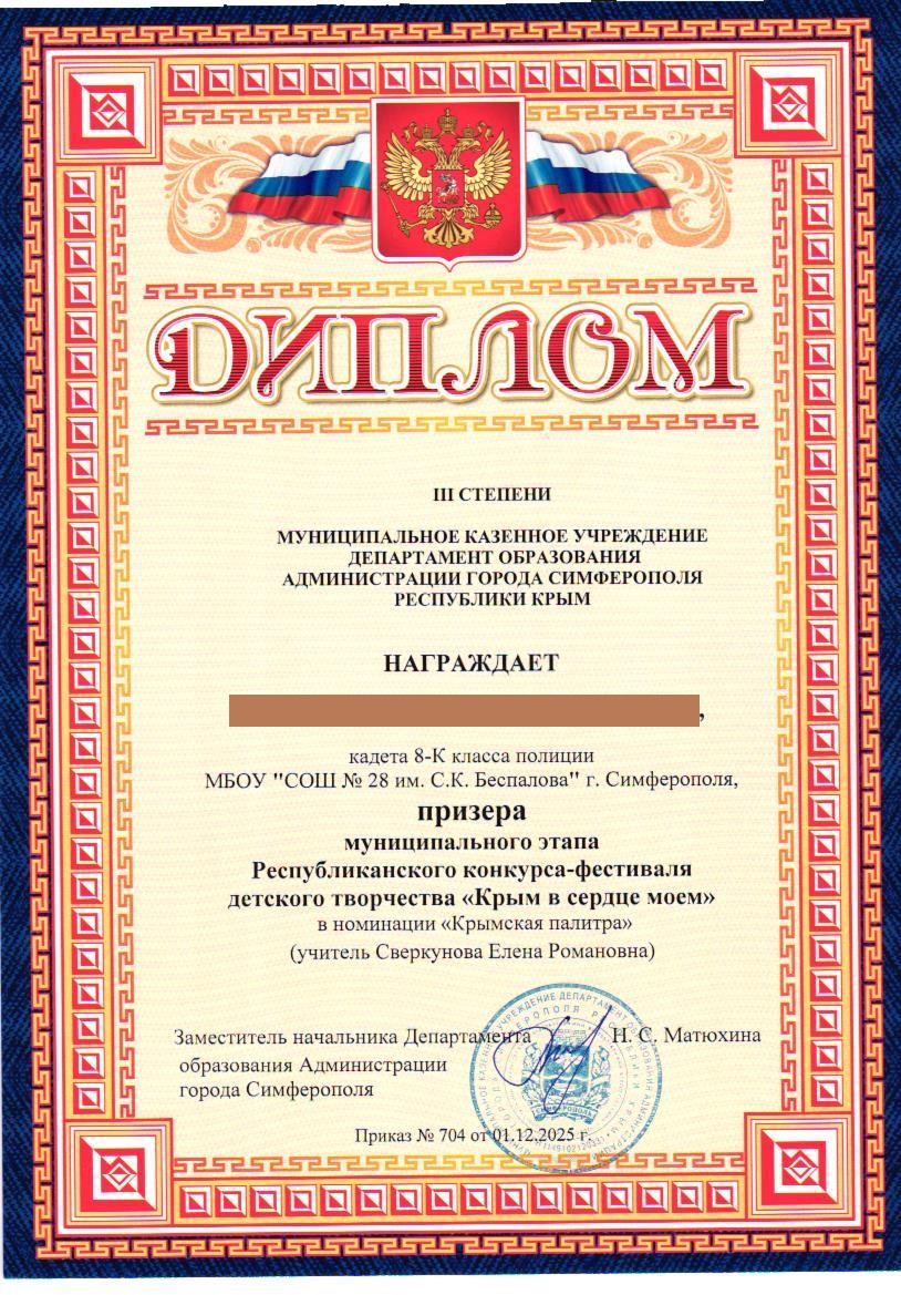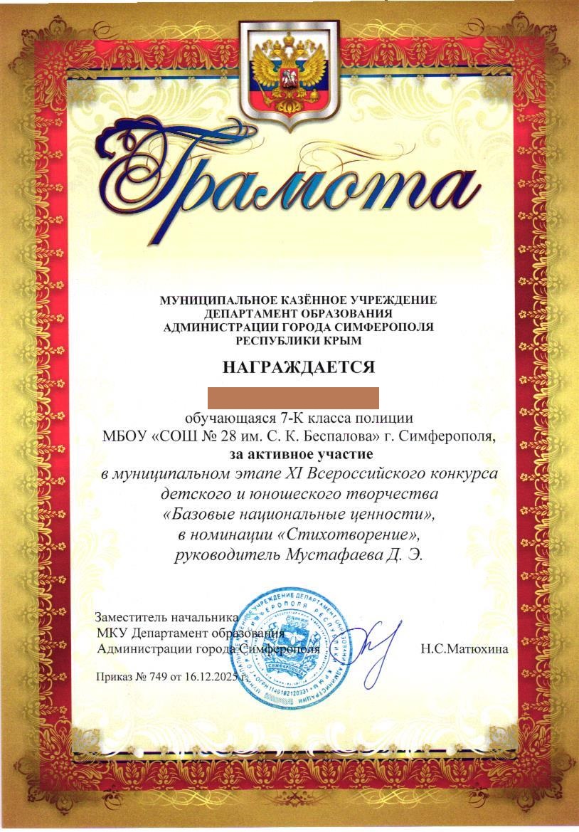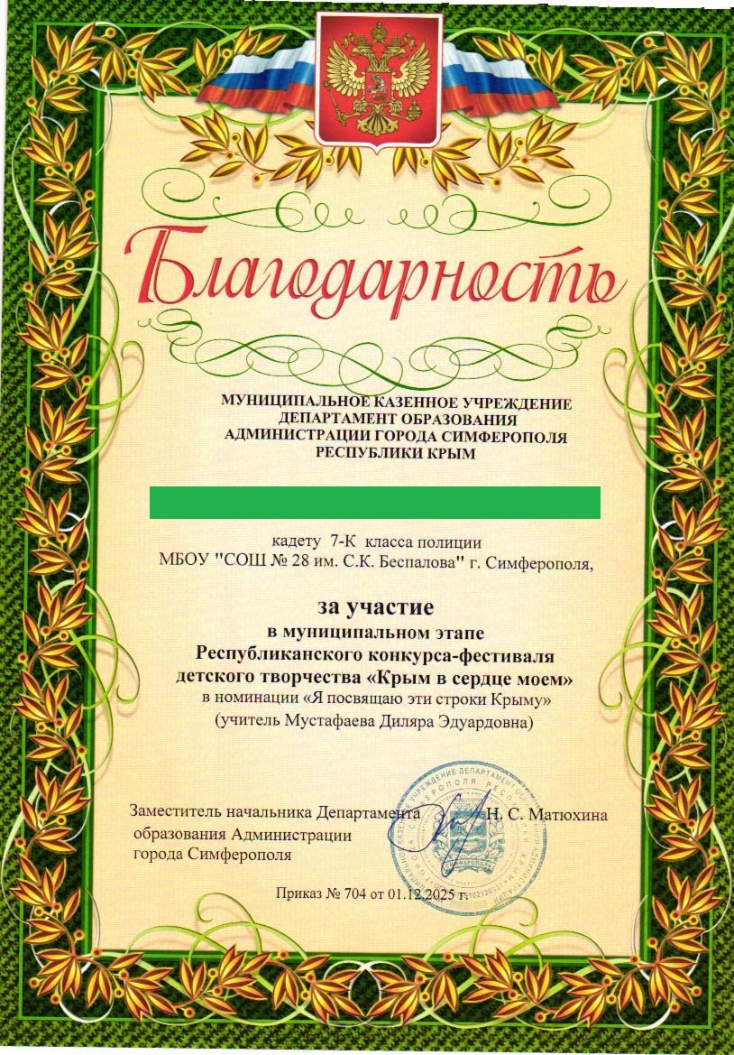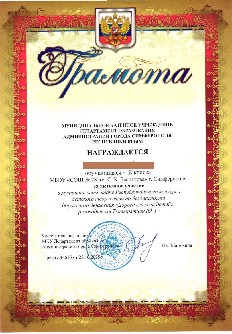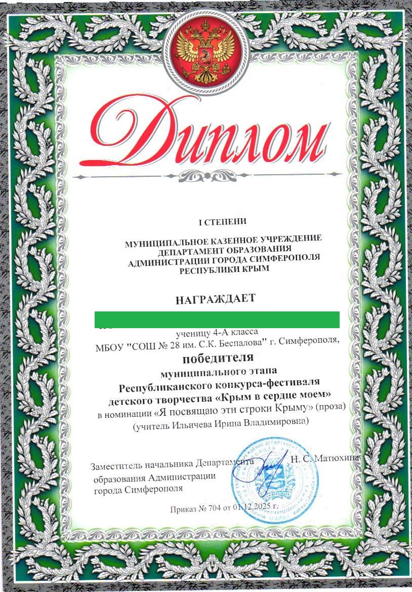 Муниципальное бюджетное общеобразовательное учреждение «Средняя общеобразовательная школа №28 им. С.К. Беспалова» муниципального образования городского округа Симферополь Республики Крым