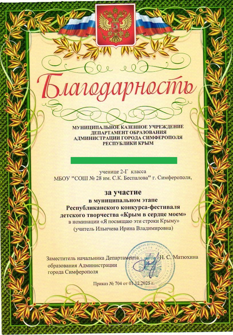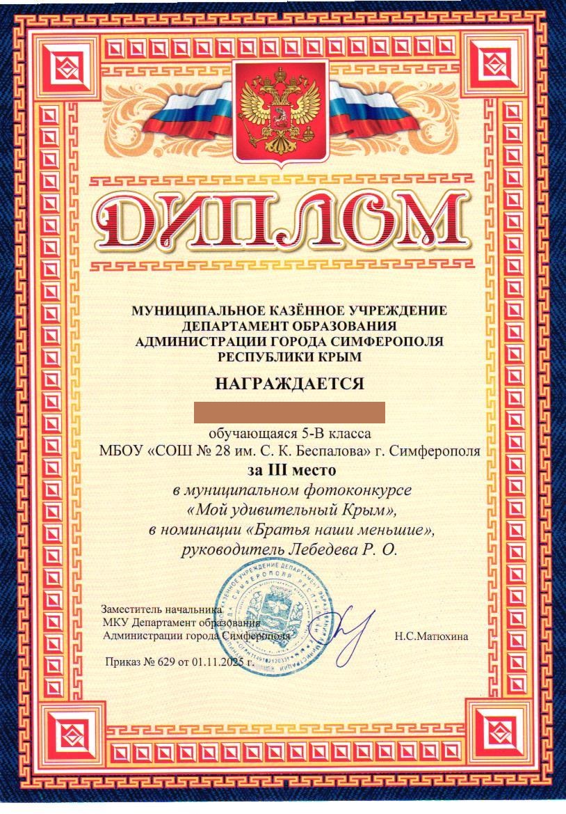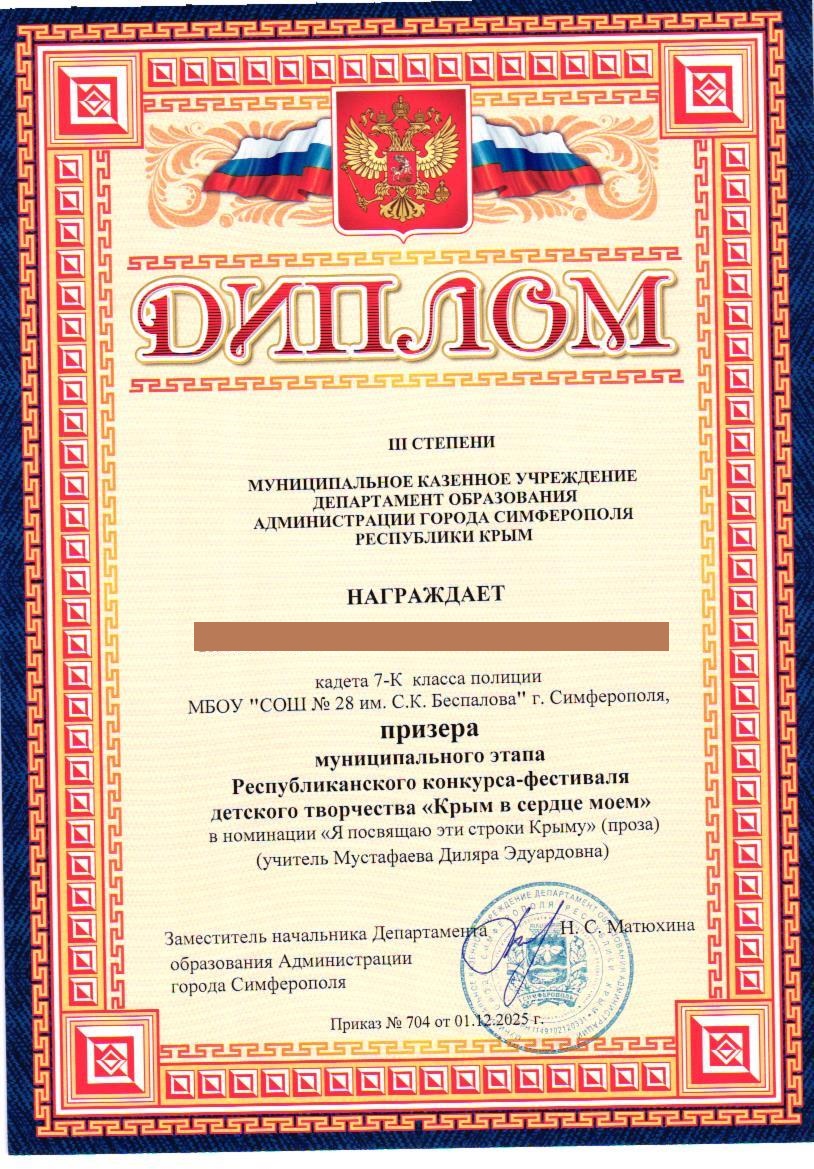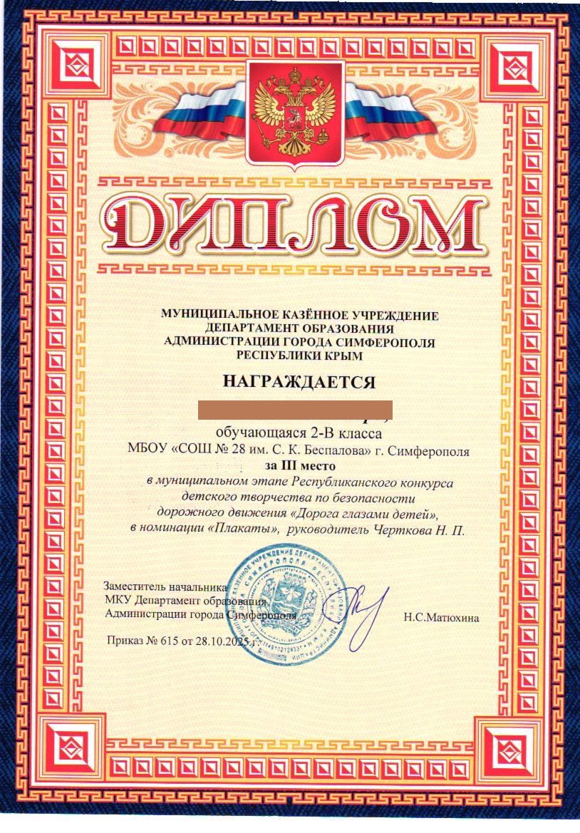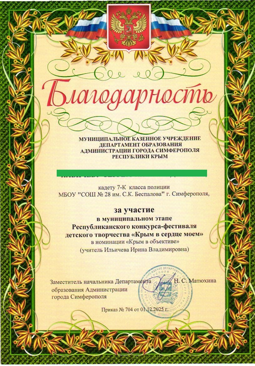 Муниципальное бюджетное общеобразовательное учреждение «Средняя общеобразовательная школа №28 им. С.К. Беспалова» муниципального образования городского округа Симферополь Республики Крым