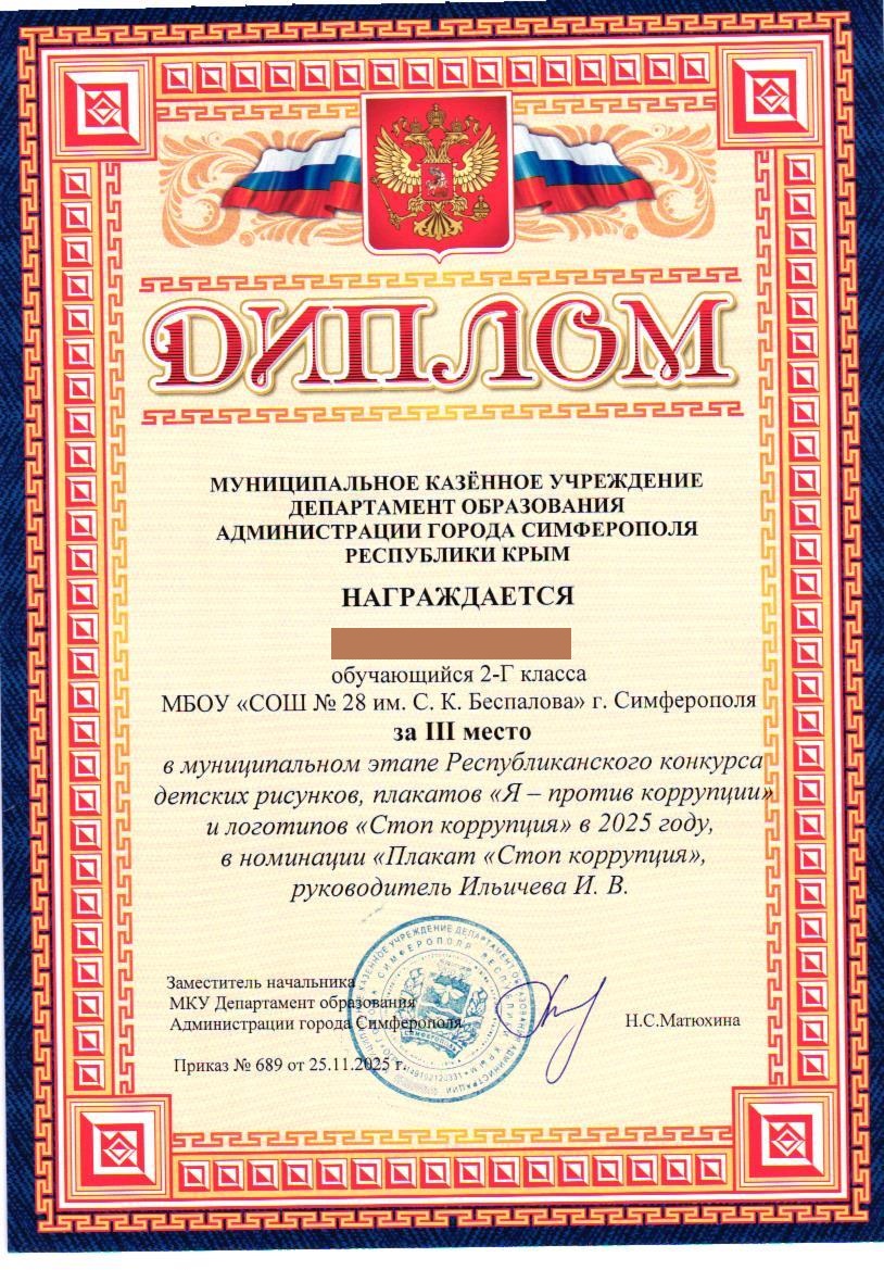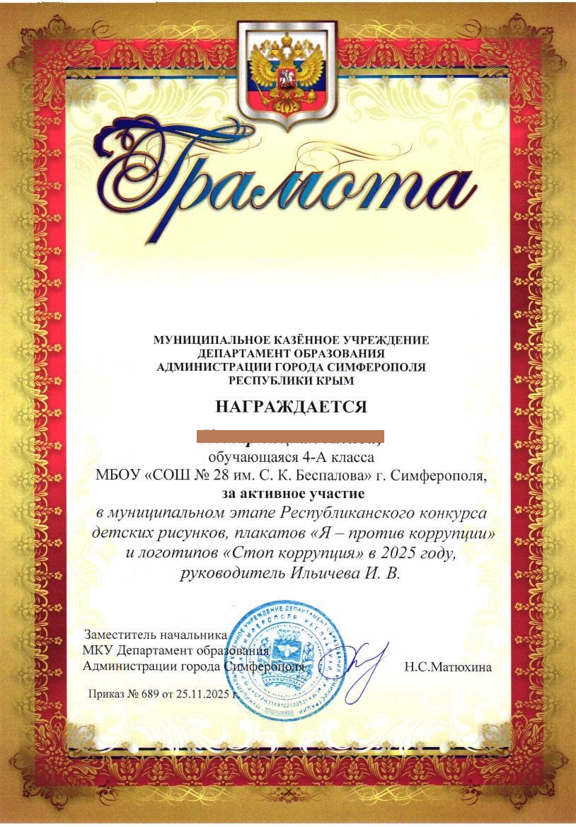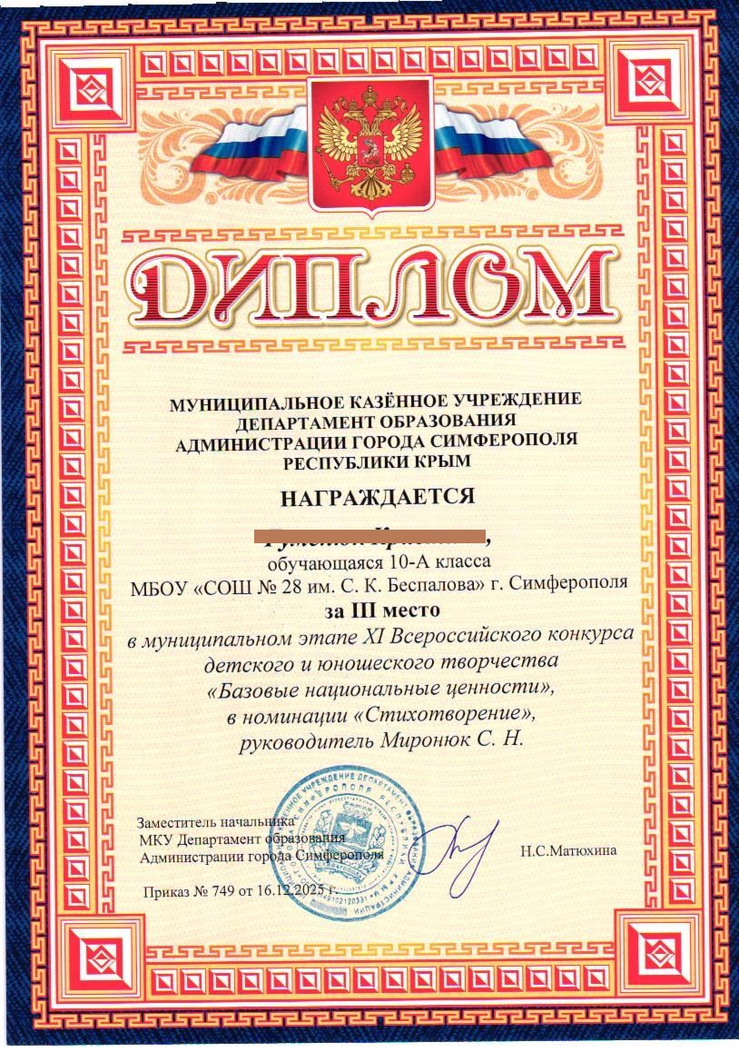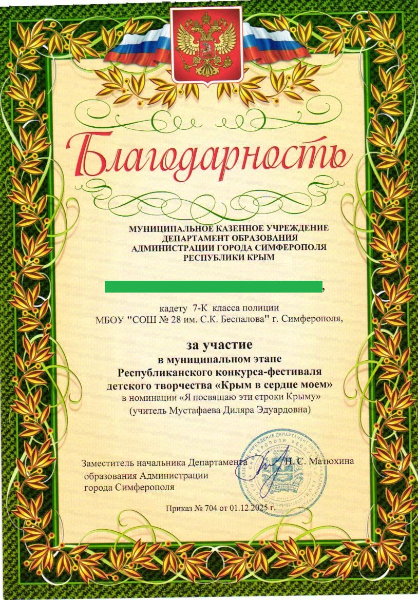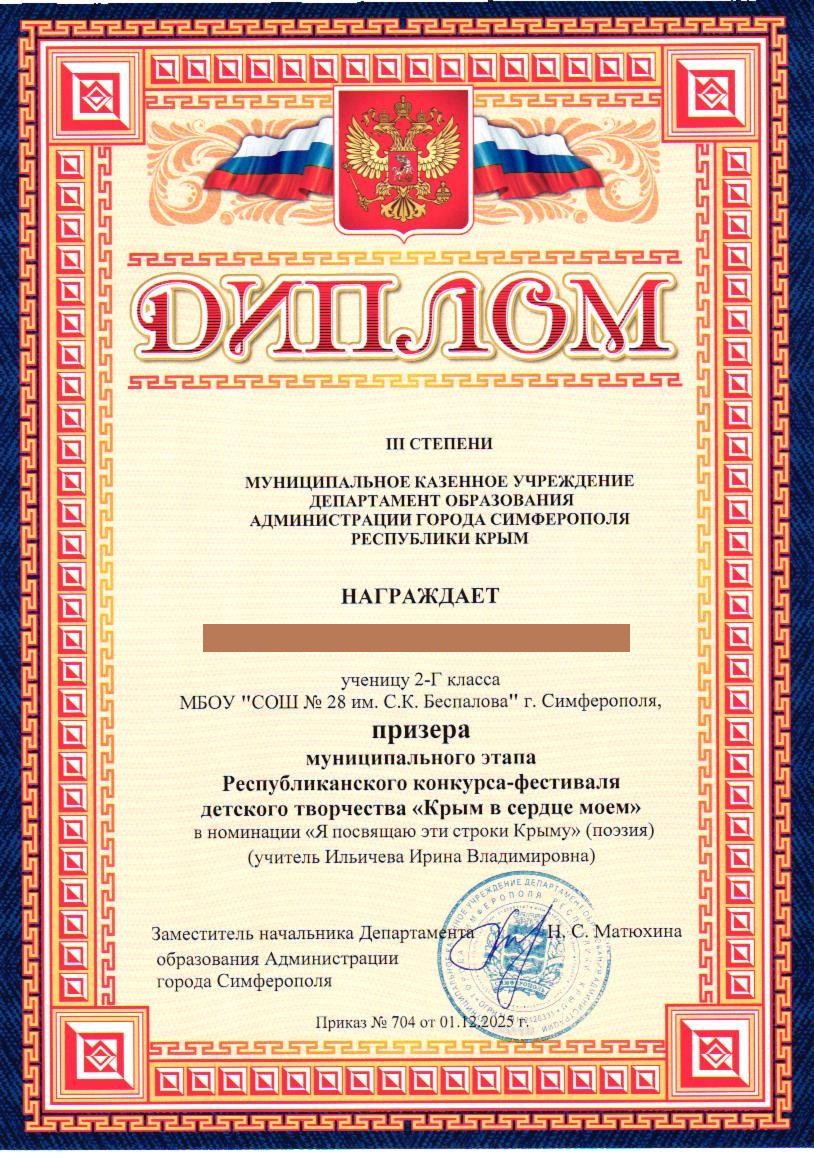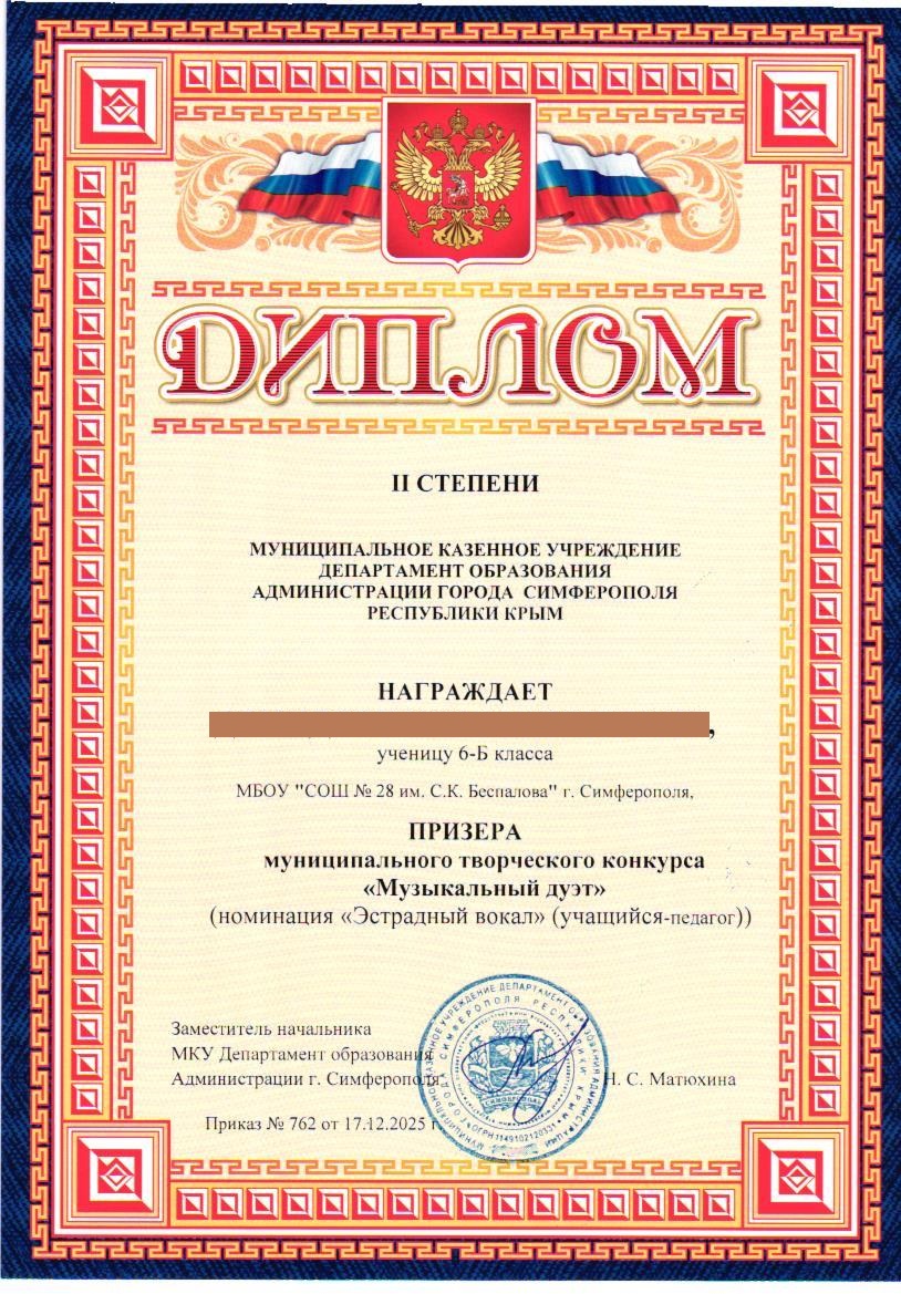 Муниципальное бюджетное общеобразовательное учреждение «Средняя общеобразовательная школа №28 им. С.К. Беспалова» муниципального образования городского округа Симферополь Республики Крым