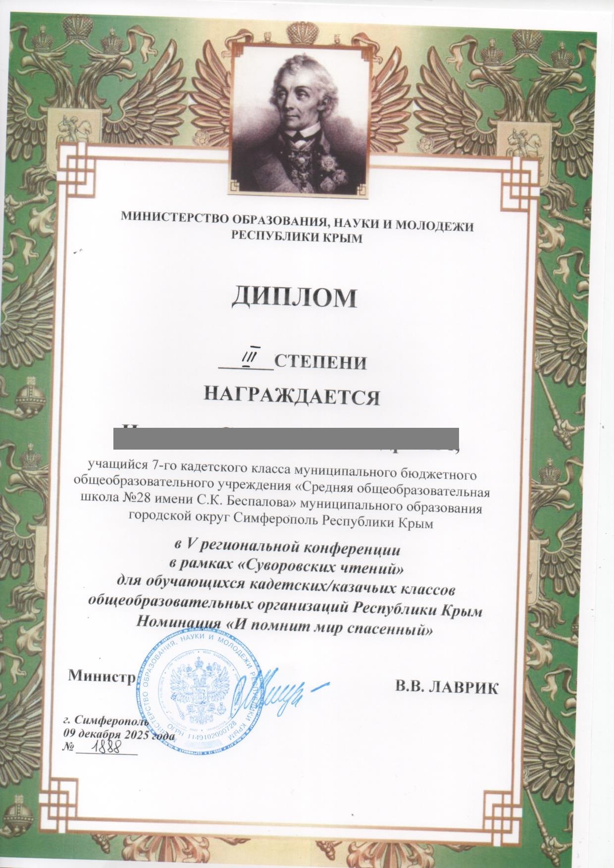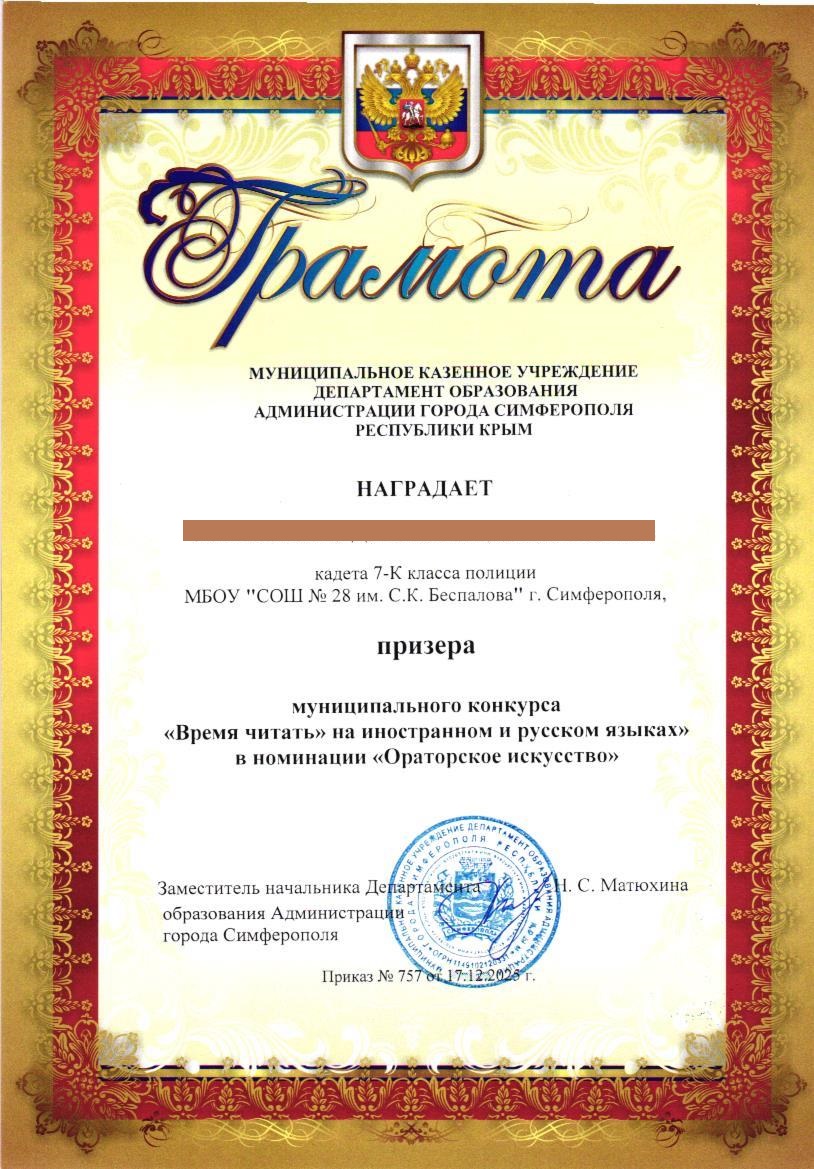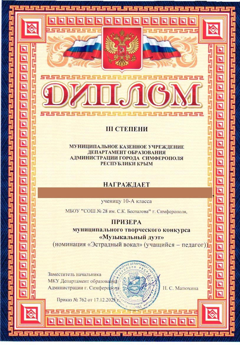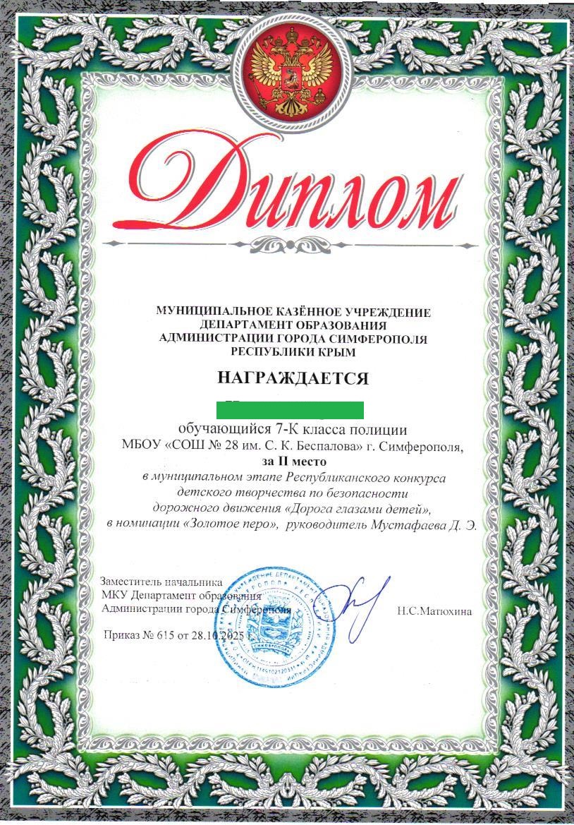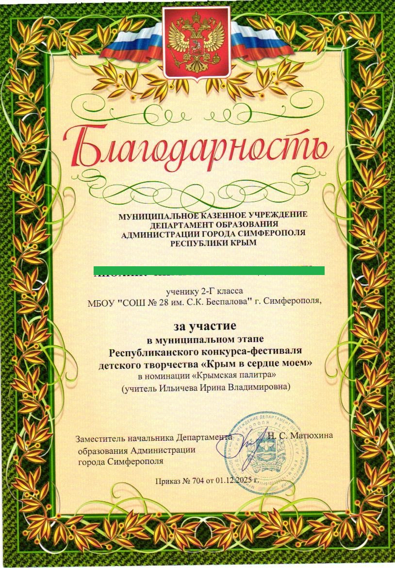 Муниципальное бюджетное общеобразовательное учреждение «Средняя общеобразовательная школа №28 им. С.К. Беспалова» муниципального образования городского округа Симферополь Республики Крым