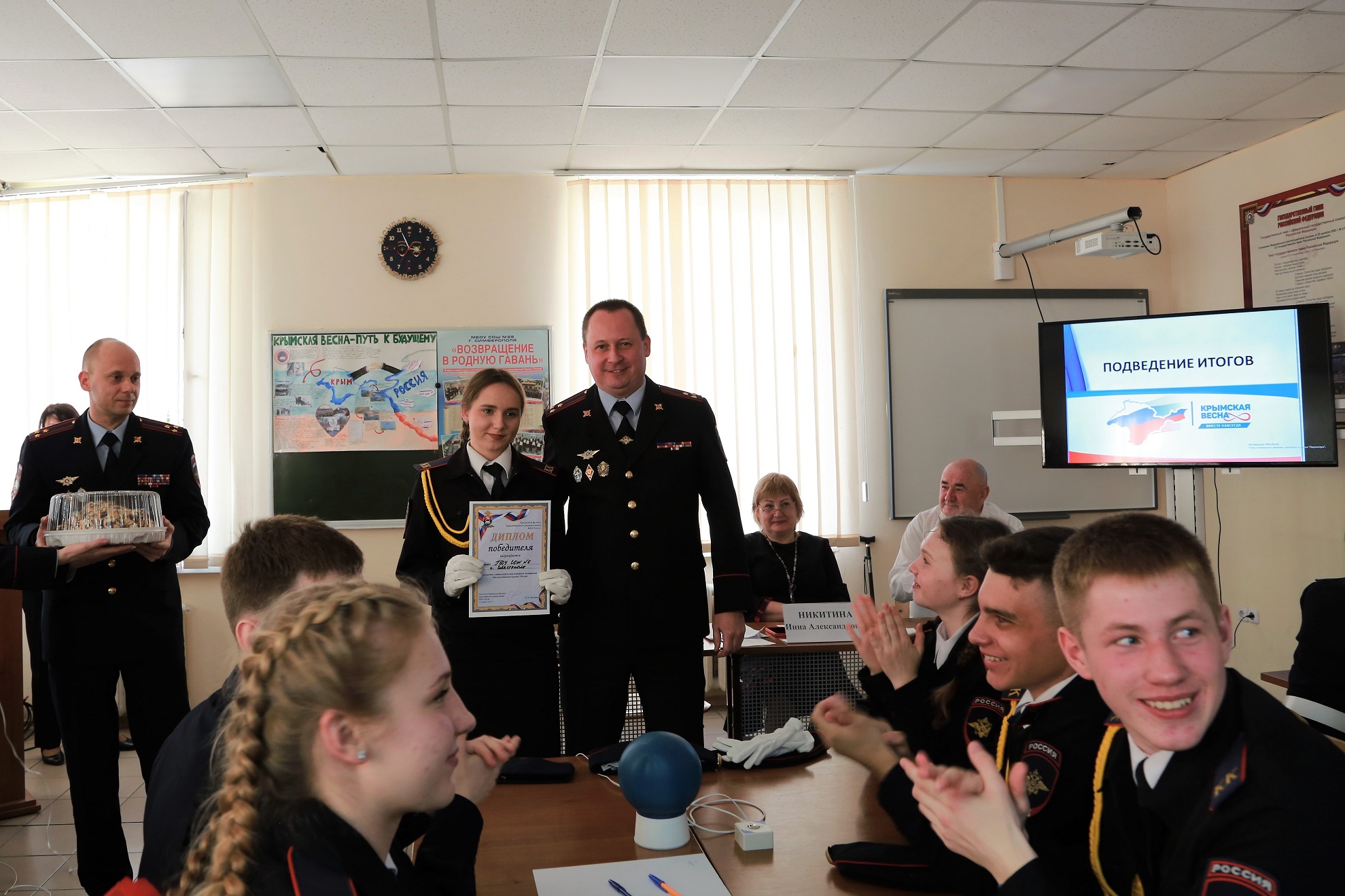В рамках проекта «Кадетские игры», предусматривающего состязания интеллектуальной, спортивной и творческой направленности среди учащихся полицейских кадетских классов региона, в преддверии Дня воссоединения Крыма с Россией в Крымском филиале состоялась интеллектуальная викторина между командами средних общеобразовательных школ № 28 города Симферополя, № 6 города Севастополя и ялтинской гимназии № 11