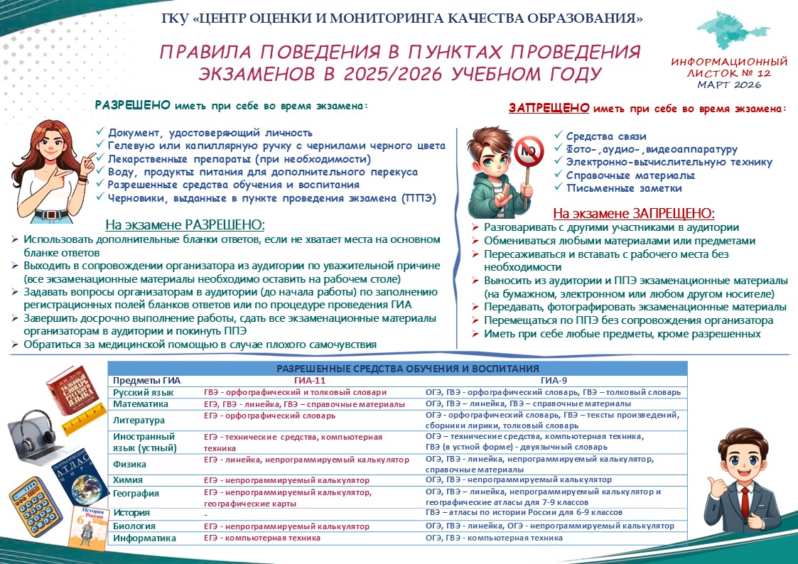 Правила поведения в пунктах проведения экзамена в 2025/2026 учебном году