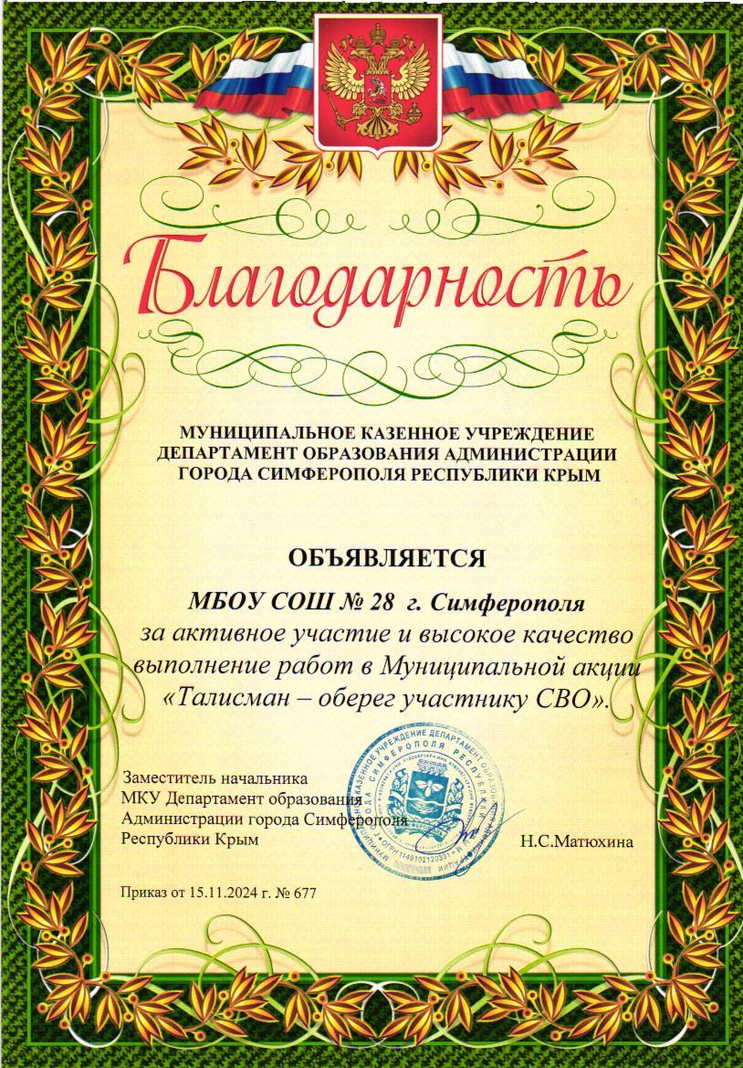 МБОУ «СОШ №28 им. С.К. Беспалова» г. Симферополь