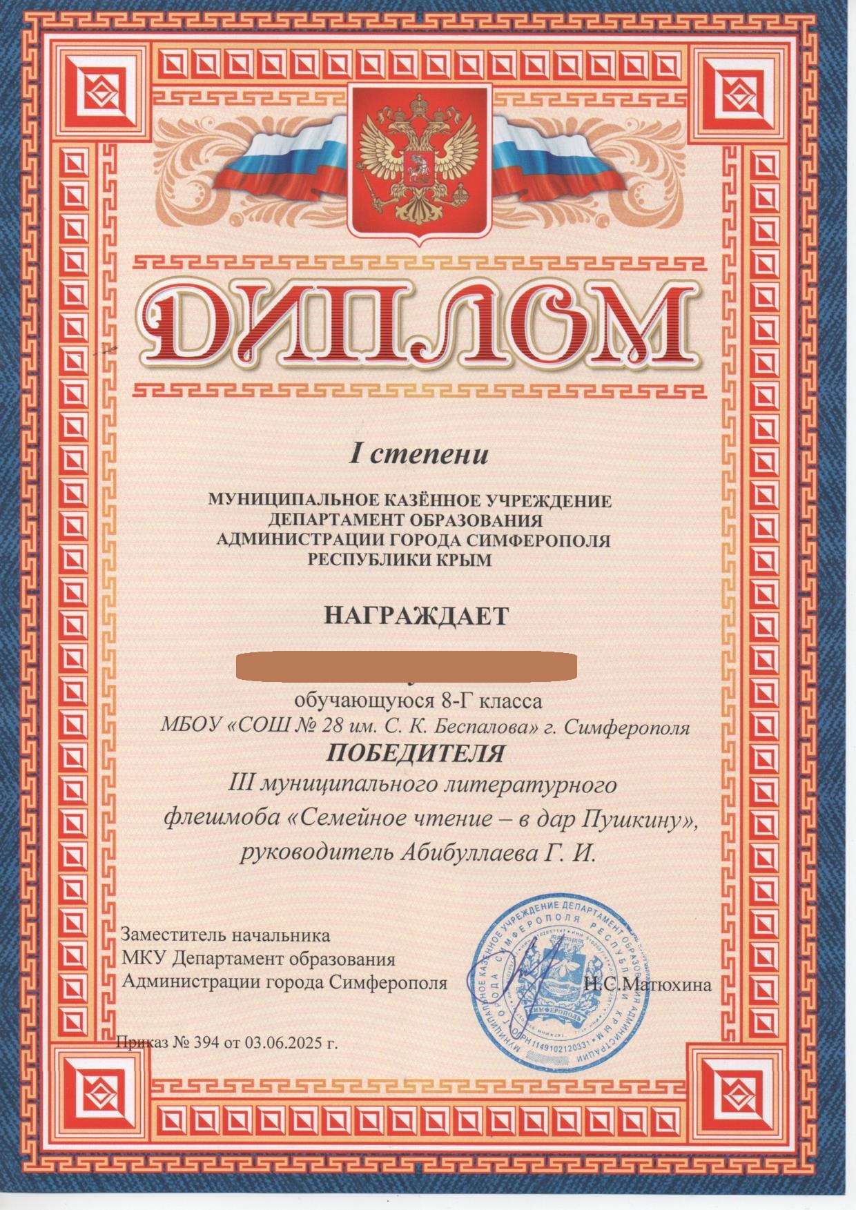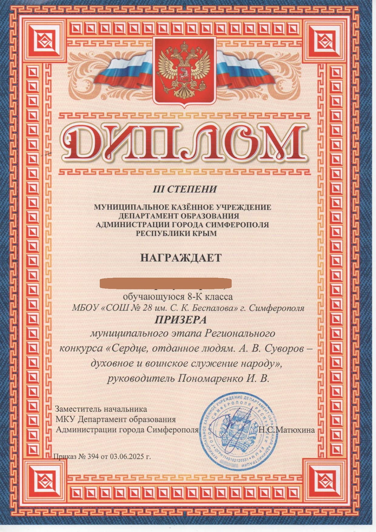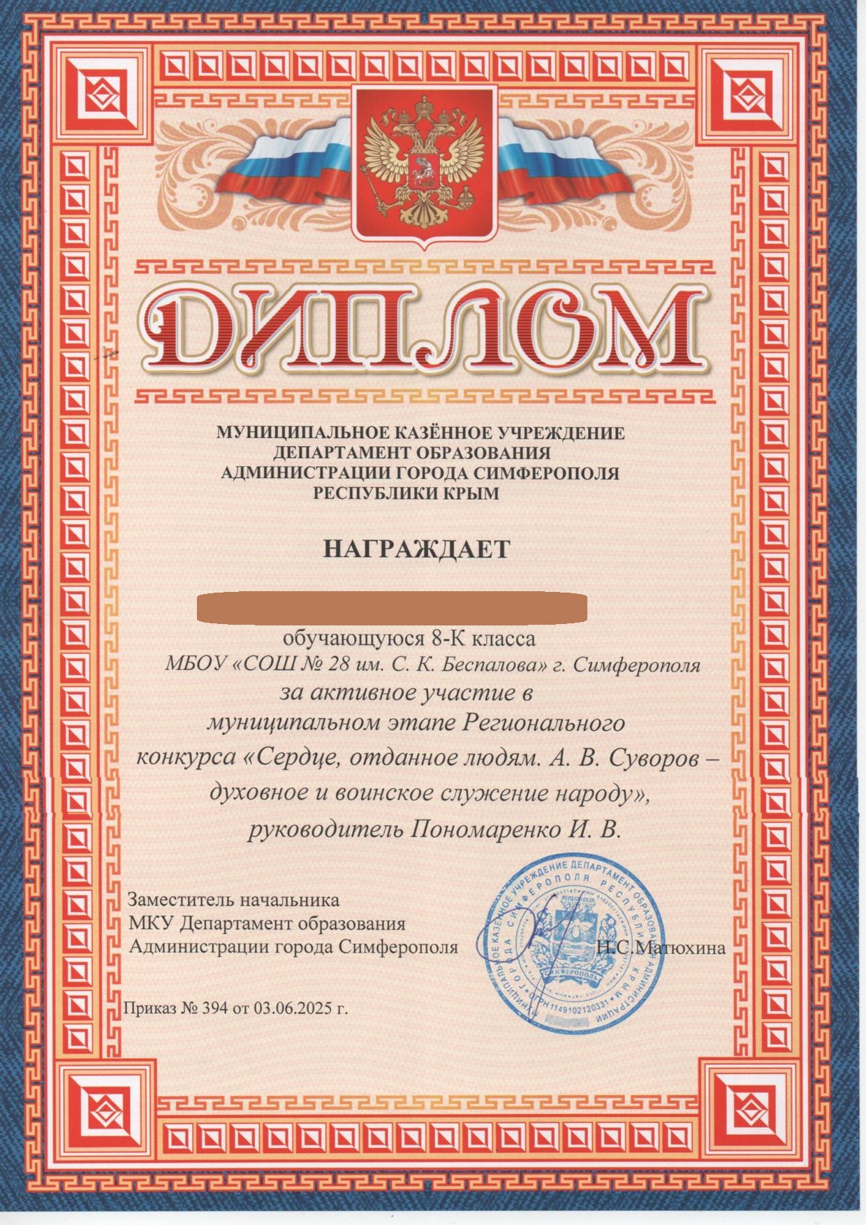 Муниципальное бюджетное общеобразовательное учреждение «Средняя общеобразовательная школа №28 им. С.К. Беспалова» муниципального образования городского округа Симферополь Республики Крым