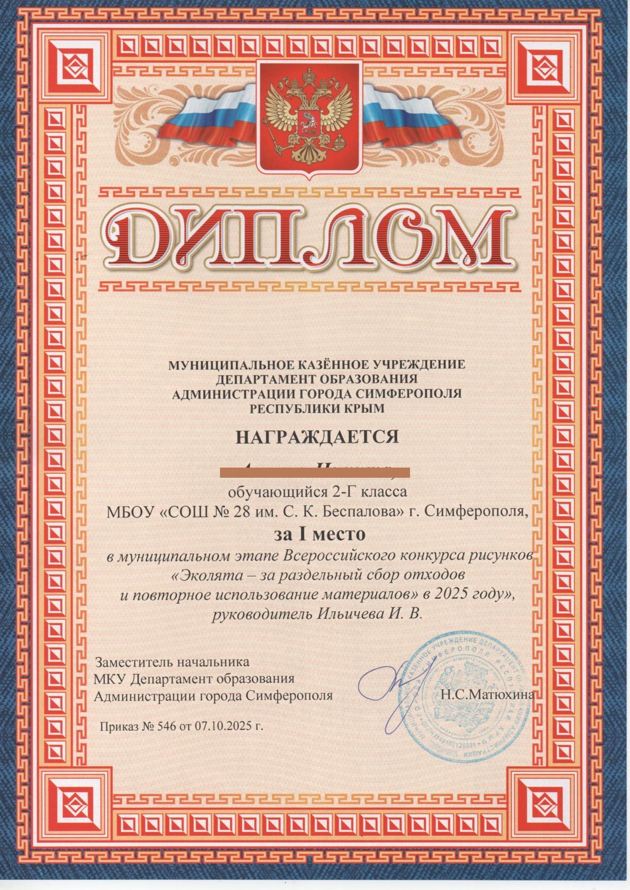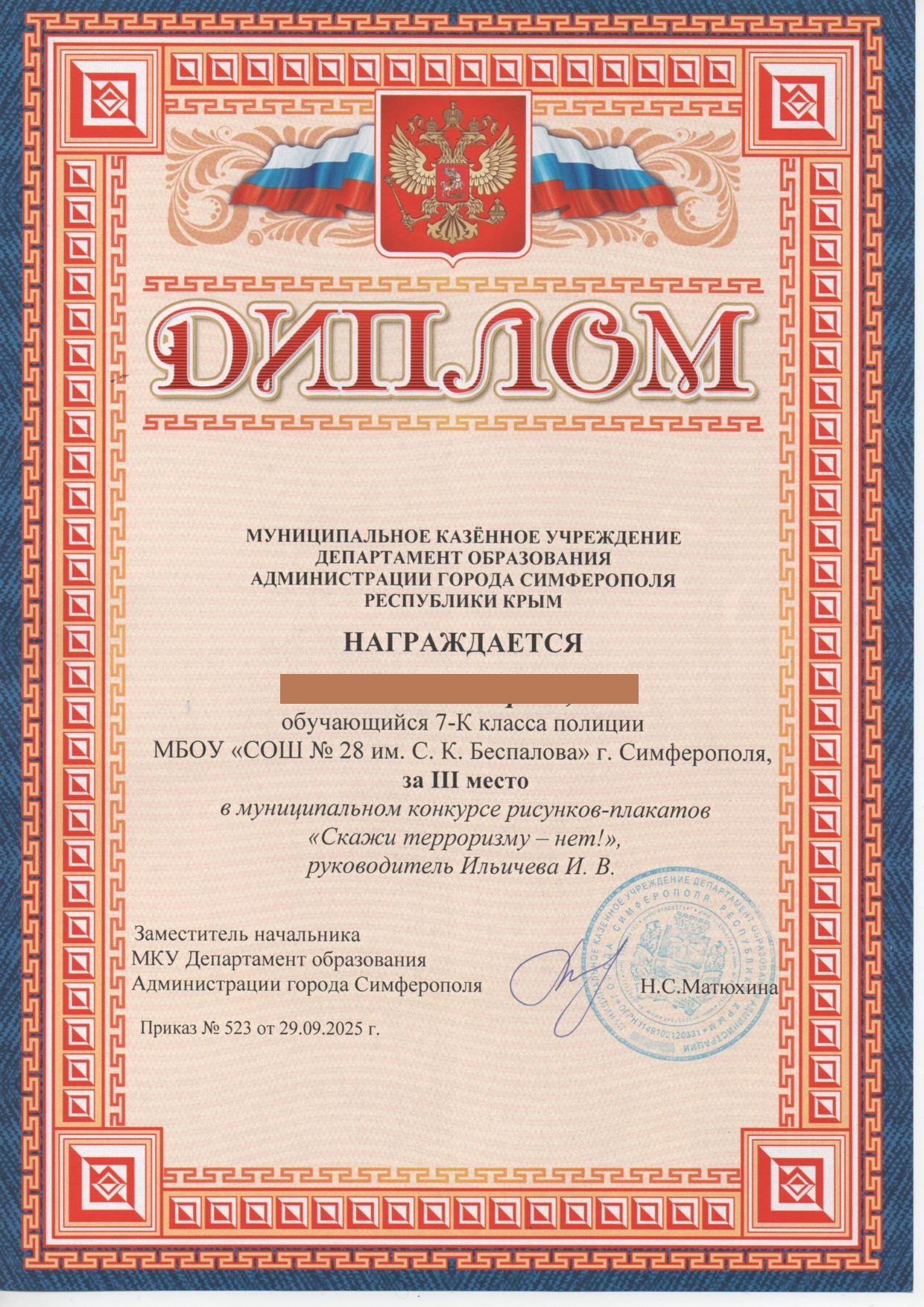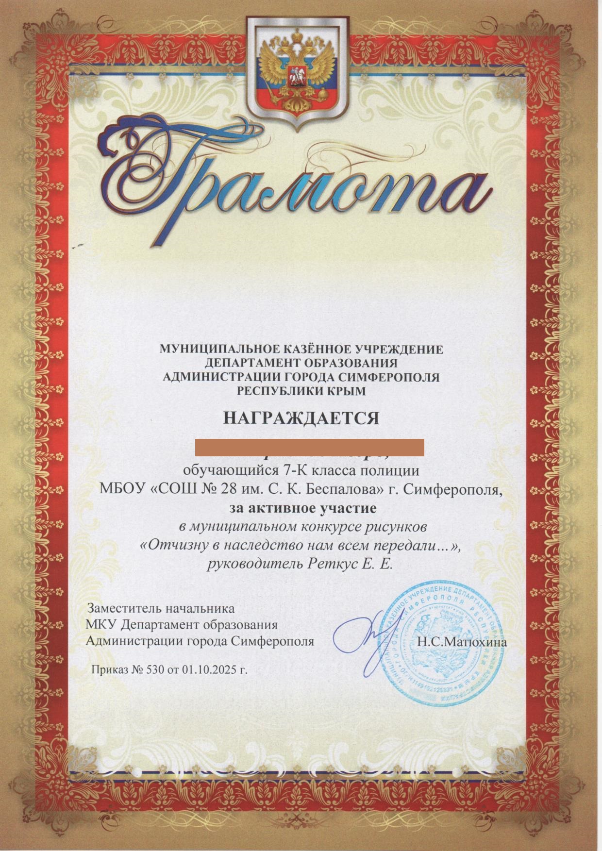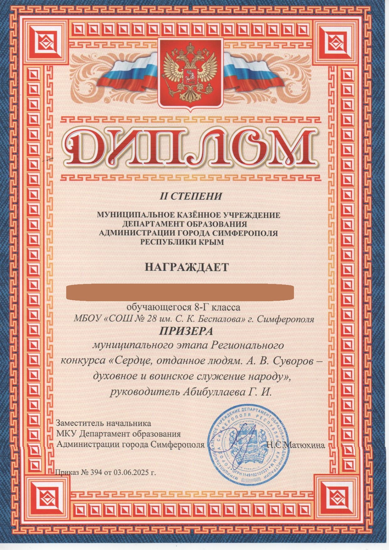 Муниципальное бюджетное общеобразовательное учреждение «Средняя общеобразовательная школа №28 им. С.К. Беспалова» муниципального образования городского округа Симферополь Республики Крым