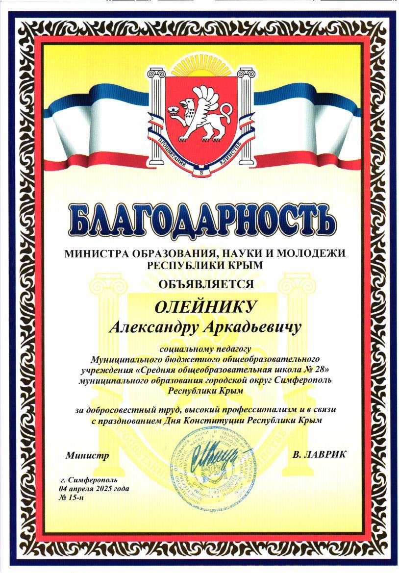 МБОУ «СОШ №28 им. С.К. Беспалова» г. Симферополь