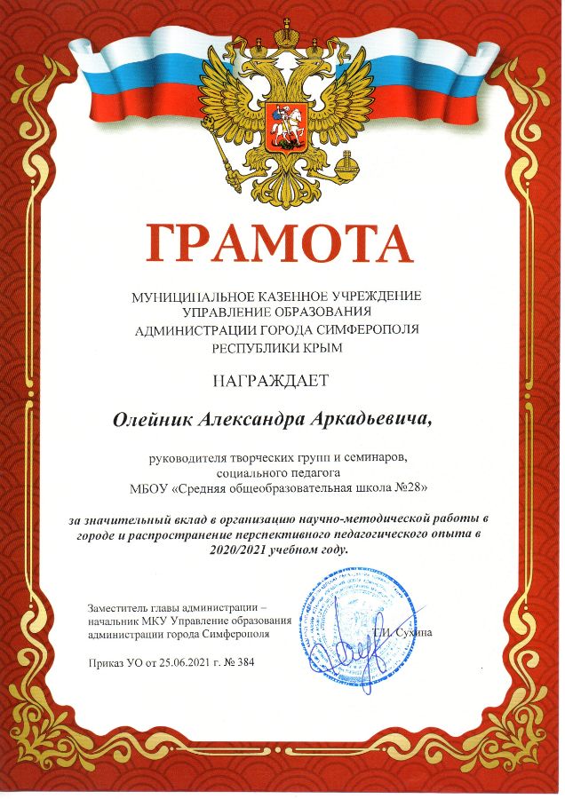 Муниципальное бюджетное общеобразовательное учреждение «Средняя общеобразовательная школа №28 им. С.К. Беспалова» муниципального образования городского округа Симферополь Республики Крым