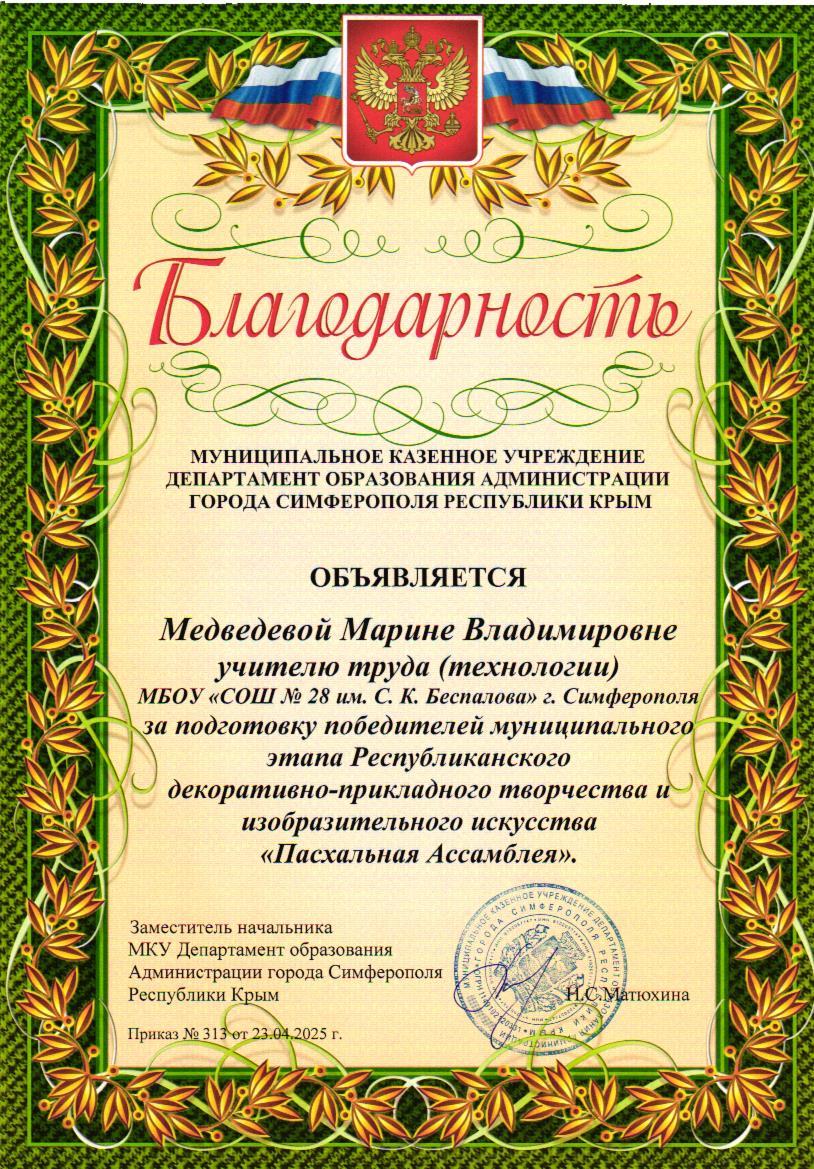 Муниципальное бюджетное общеобразовательное учреждение «Средняя общеобразовательная школа №28 им. С.К. Беспалова» муниципального образования городского округа Симферополь Республики Крым