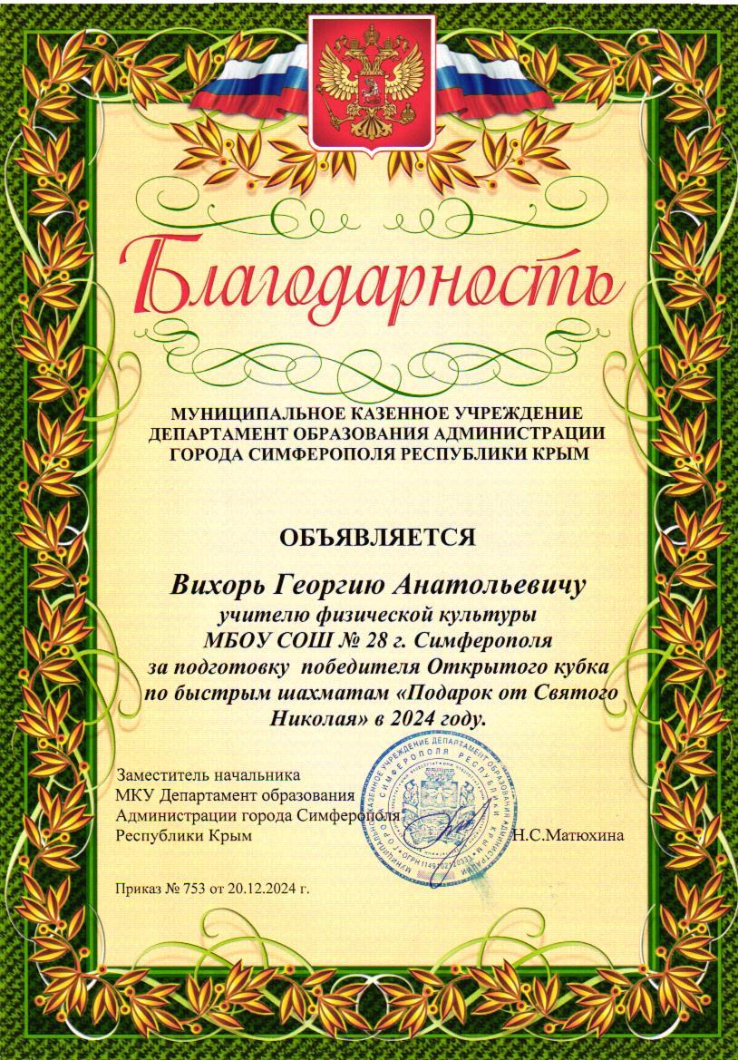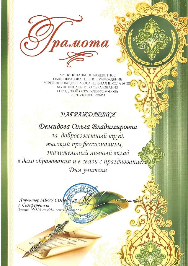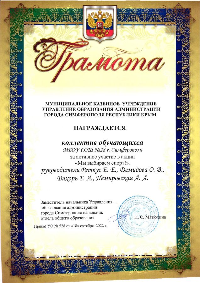 МБОУ «СОШ №28 им. С.К. Беспалова» г. Симферополь