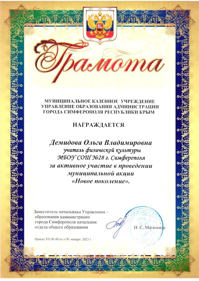 Муниципальное бюджетное общеобразовательное учреждение «Средняя общеобразовательная школа №28 им. С.К. Беспалова» муниципального образования городского округа Симферополь Республики Крым