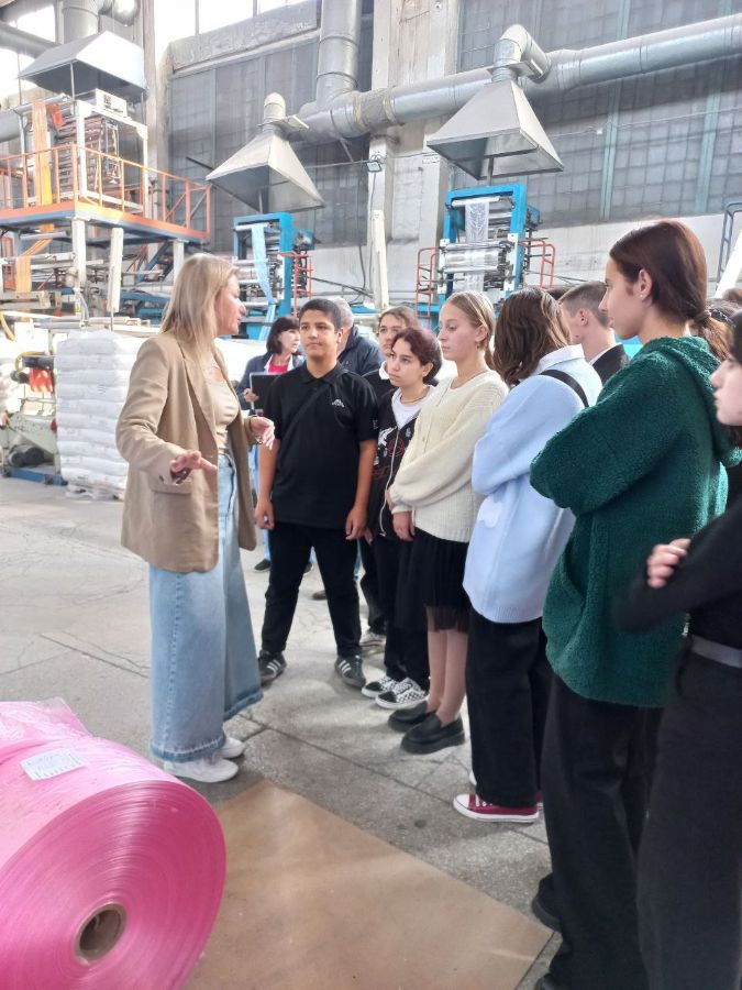 8Д класс 5 октября в рамках кл часа "Россия -мои горизонты" посетил Симферопольское производственное объединение "Крымпласт". Учащиеся познакомились с полным циклом производства полиэтиленовых пакетов,продукция биоразлагаемая.Увидели ,как работают цеха по непрерывного производству