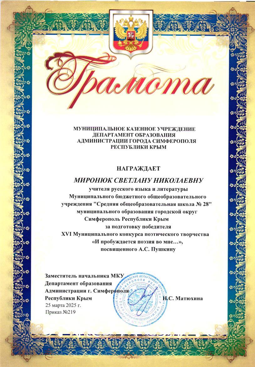 Миронюк Светлана Николаевна