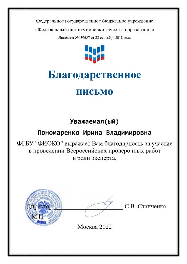 Пономаренко Ирина Владимировна