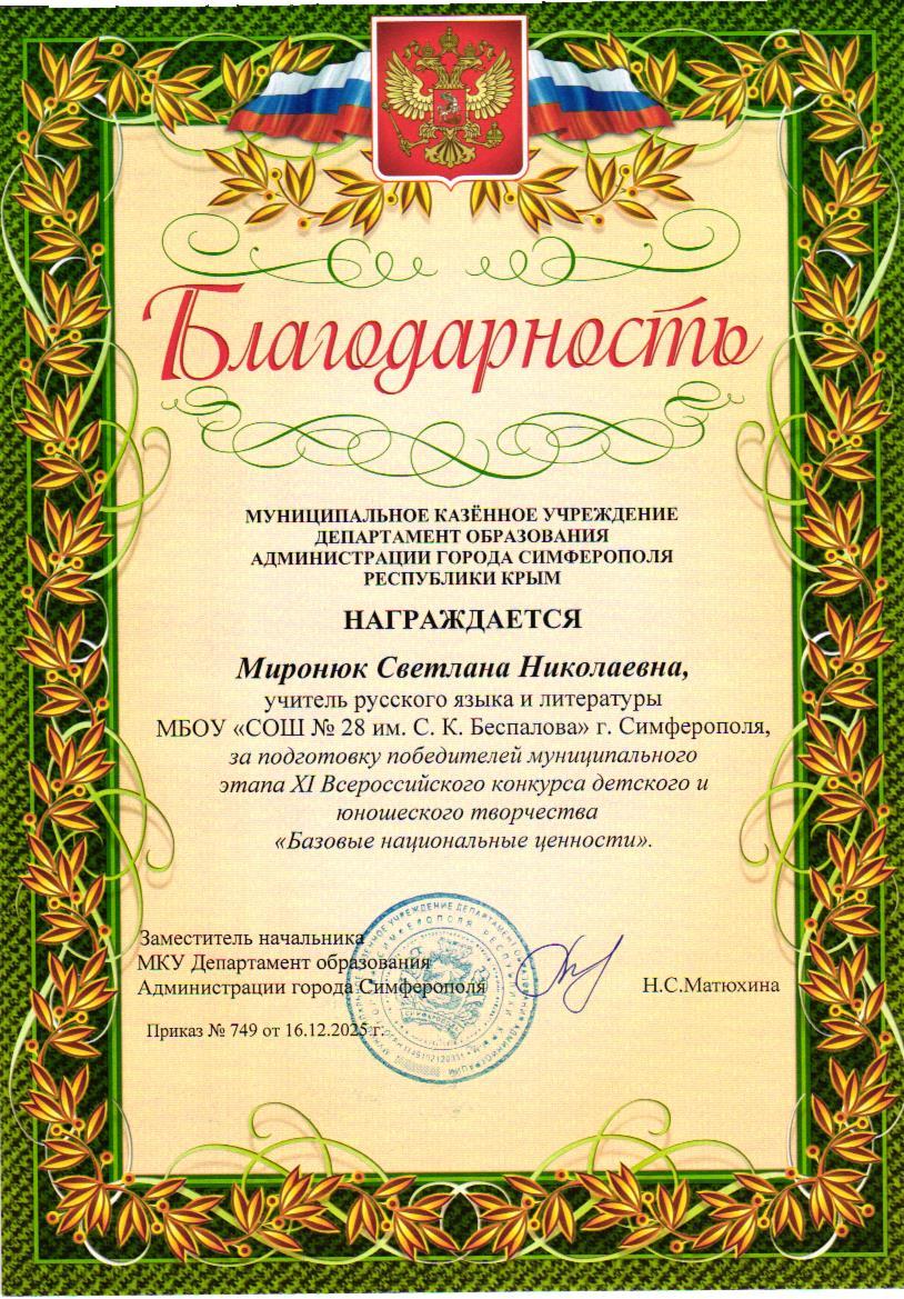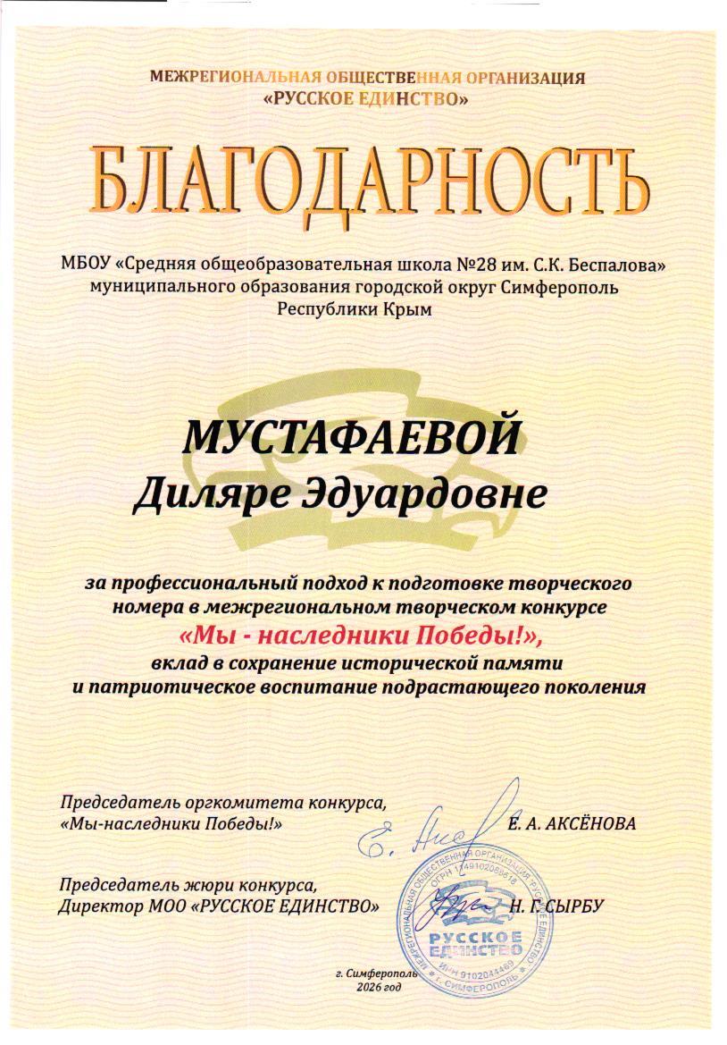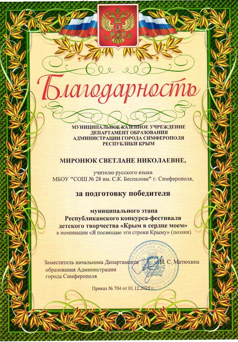 Муниципальное бюджетное общеобразовательное учреждение «Средняя общеобразовательная школа №28 им. С.К. Беспалова» муниципального образования городского округа Симферополь Республики Крым
