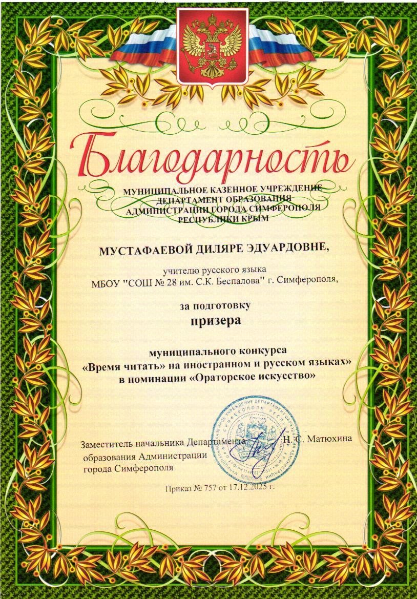 Мустафаева Диляра Эдуардовна
